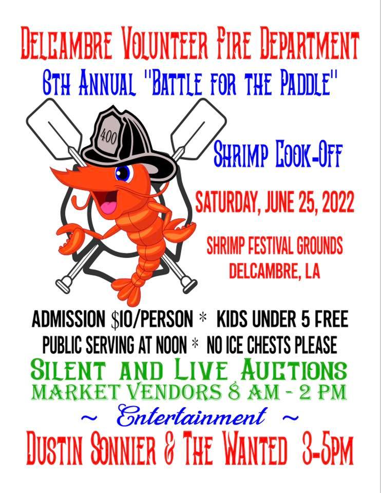 The Delcambre Fire Department is hosting the return of an event that has been a favorite for many years the Battle for the Paddle helps support the department and the 20+ firefighters and over 30+ active members, including junior firefighters and support members.